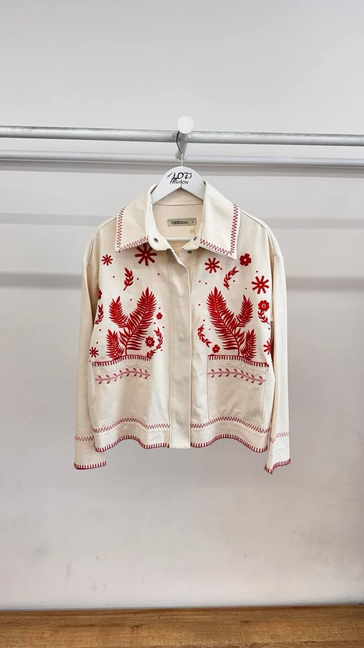 Beyaz Renkli Nakış İşlemeli Ceket